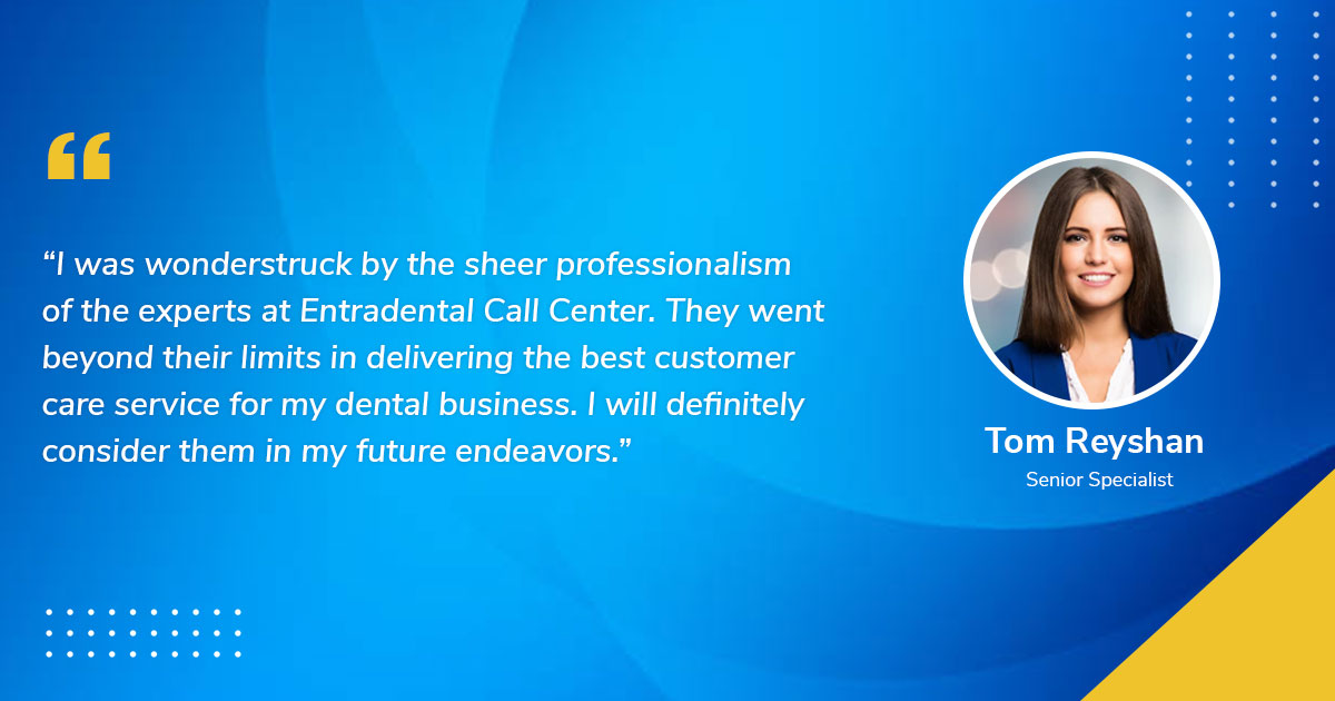 “I was wonderstruck by the sheer professionalism of the experts at Entradental Call Center. They went beyond their limits in delivering the best customer care service for my dental business. I will definitely consider them in my future endeavors.”