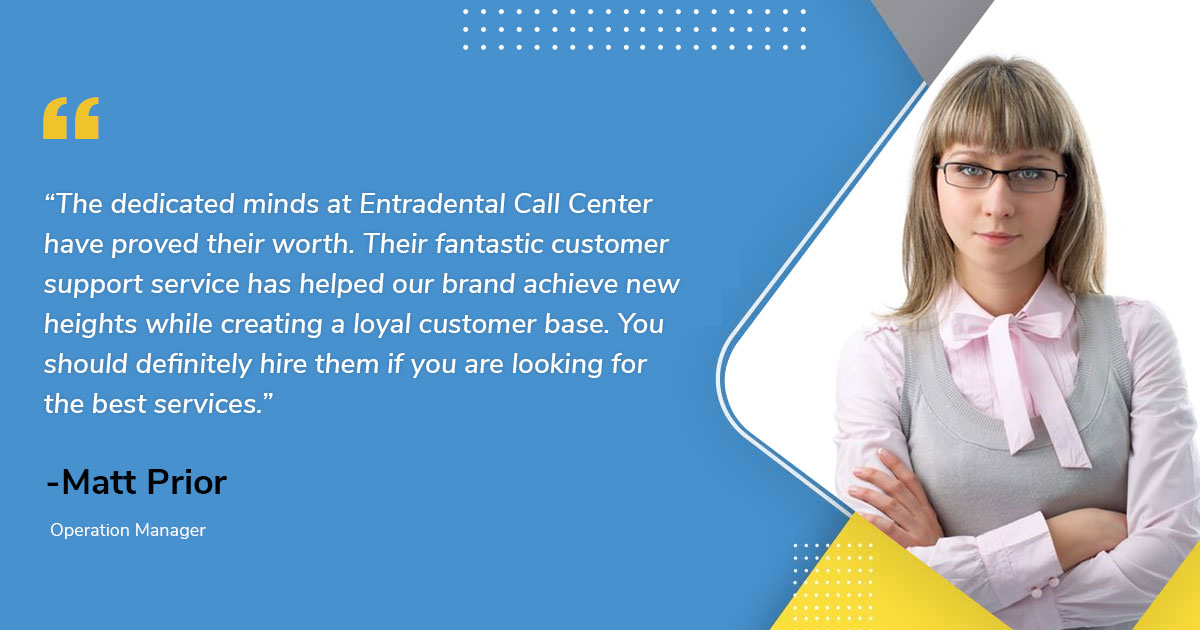 “The dedicated minds at Entradental Call Center have proved their worth. Their fantastic customer support service has helped our brand achieve new heights while creating a loyal customer base. You should definitely hire them if you are looking for the best services.”